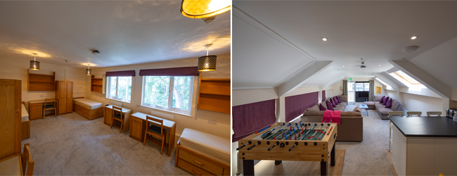 Accommodation in a residence on campus.