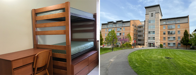 Accommodation in a residence on campus.